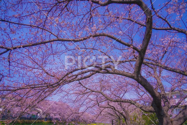 宮城県柴田町船岡 一目千本桜と川辺